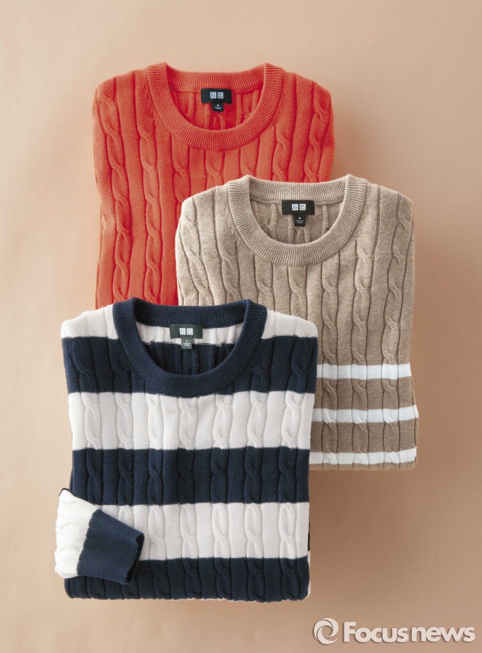 남성용으로는 가는 케이블 짜임에 보더 무늬(줄무늬)를 더한 ‘케이블 크루넥 스웨터’를 출시했다. 두가지 굵기의 보더 무늬로 체격에 따라 연출할 수 있고, 크루넥·브이넥·카디건 등의 디자인으로 선택의 폭을 넓혔다.