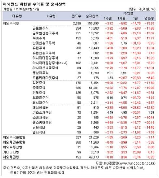 중국주식펀드는 -2.22%의 수익률을 기록했다. 중국 본토 증시는 설 연휴로 한 주간 휴장했다. 중국주식펀드는 중국 증시 휴장으로 일단 급락세는 면한 셈이다.