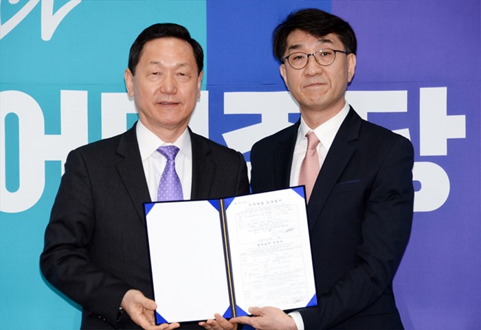 이 전 위원은 이날 오전 국회에서 열린 입당 기자회견에서 "더민주 당원으로서 기업의 지배구조를 개선하기 위한 노력을 할 것이며 모든 국민이 함께 더불어 편안하게 경제생활을 영위할 수 있도록 하기 위한 모든 노력을 아끼지 않을 것"이라고 말했다.15일 오전 서울 여의도 국회에서 열린 더불어민주당 인재영입 기자회견에 참석한 김상곤(왼쪽) 인재영입위원장이 이지수 전 좋은기업지배연구소 연구위원으로부터 입당원서를 전달받은 뒤 취재진을 향해 포즈를 취하고 있다. <사진제공=더불어민주당> 2016.02.15 포커스포토