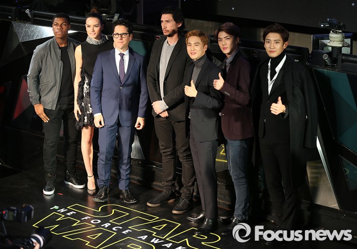 라면업계 관계자는 “제품 광고모델 외에 연예기획사와의 협업은 이례적이라고 본다”면서도 “라면은 제품 자체에 경쟁력이 없다면 성공하기 어렵다. 다만 제조사 입장에서는 공장 가동률을 높일 수 있어 도움이 될 것”이라고 내다봤다.(서울=포커스뉴스) 9일 오전 서울 강남구 클럽 옥타곤에서 열린 영화 '스타워즈 : 깨어난 포스' 팬이벤트에 참석한 배우 존 보예가(왼쪽부터), 데이지 리들리, J.J. 에이브럼스 감독, 아담 드라이버와 아이돌 그룹 엑소의 멤버 수호, 세훈, 찬열이 포토타임을 갖고 있다. 2015.12.10 김유근 기자