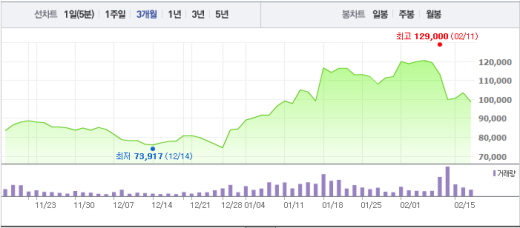 업체별로 보면 코스닥 대장주인 셀트리온은 이날 4.5%의 낙폭을 기록하며 10만원대 밑으로 내려 앉았다. 셀트리온은 전일 대비 4700원(4.54%) 떨어진 9만8800원에 거래를 마감했다. 10만원 밑으로 떨어진 것은 1월 15일 이후 약 1개월만이다.