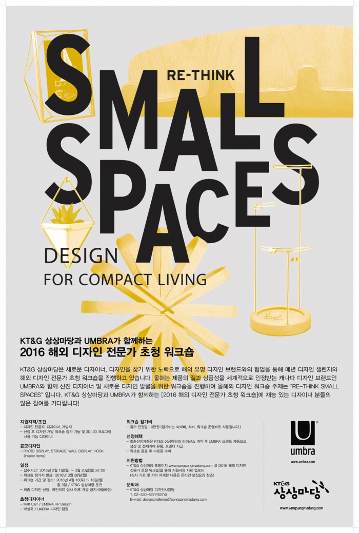 이번 워크숍을 통해 최종 선정된 디자인은 움브라 브랜드로 제작돼 전 세계 130여개국에 유통될 뿐 아니라, 유럽 최대 규모의 생활용품 박람회인 '독일 암비안떼(Ambiente)'와 '메종 오브제(MAISON & OBJET)'에 출품할 수 있는 기회도 얻는다.