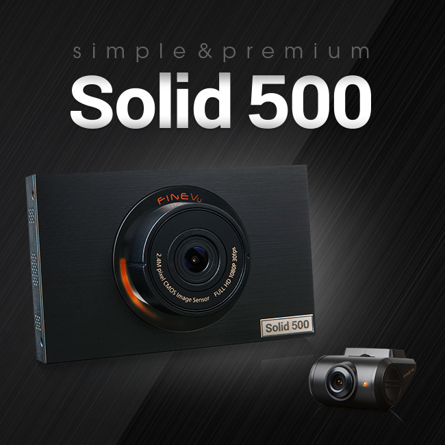 솔리드500은 야간 영상 녹화에 특화된 전·후방 풀HD 2채널 블랙박스다. 파인뷰만의 독자적 기술로 개발된 야간 영상 녹화 기술에 대한 소비자들의 만족도가 높아 출시 2주 만에 인기순위 1위에 등극했다. 솔리드500에 적용된 야간 영상 녹화 기능인 '프리미엄 나이트 비전'은 조명이 없는 장소에서도 번호판까지 선명하게 잡아내어 생생한 화질로 녹화하는 것이 특징이다.