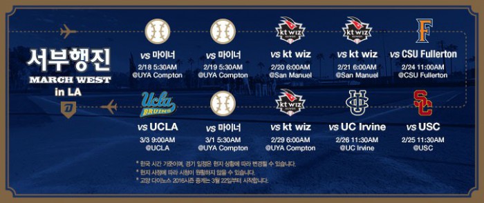 (서울=포커스뉴스) 프로야구 NC가 미국 LA 전지훈련 중 펼치는 연습경기를 온라인 생중계한다.