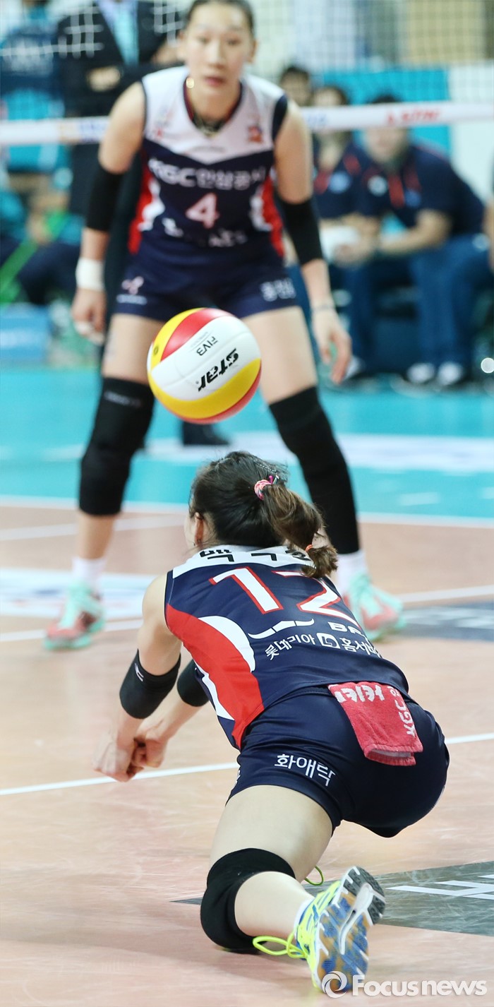 반면 흥국생명은 연승을 2경기에서 마감하며 15승 12패를 기록하게 됐고 승점은 41점에 머물렀다. 이로써 4위 GS칼텍스(승점 39점)와의 승점차도 여전히 2점에 불과하다. 하지만 GS칼텍스보다 한 경기를 더 치른 만큼 GS칼텍스의 다음 경기 결과에 따라 4위로 떨어질 우려도 있다.(서울=포커스뉴스) 2015년 12월3일 오후 장충체육관에서 열린 '2015-2016NH농협 V-리그' 여자부 GS칼텍스-KGC인삼공사 경기에서 KGC인삼공사 백목화가 안정적인 자세로 리시브하고 있다. 2015.12.03 우정식 기자