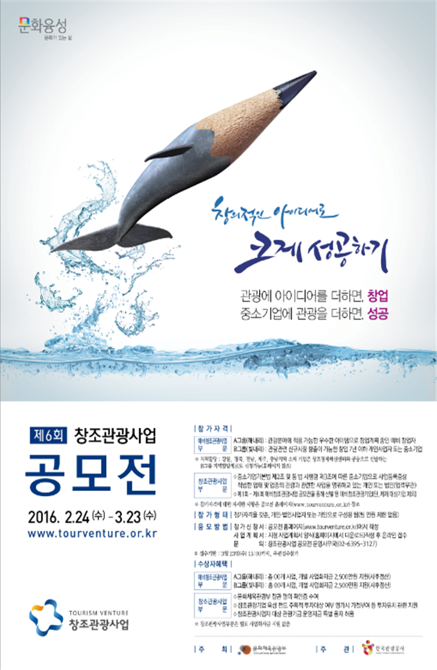 (서울=포커스뉴스) 문화체육관광부(이하 문체부)는 오는 24일부터 3월23일까지 '제6회 창조관광사업 공모전'을 개최한다고 23일 밝혔다.
