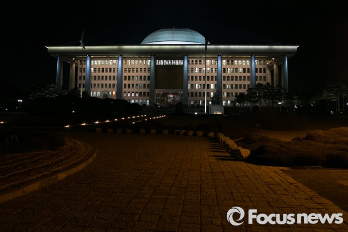 (서울=포커스뉴스) 23일 오후 서울 여의도 국회의사당이 환하게 불 켜져 있다. 이날 국회 본회의에서는 테러방지법과 관련해 야당 의원들의 무제한 토론이 벌어졌다.