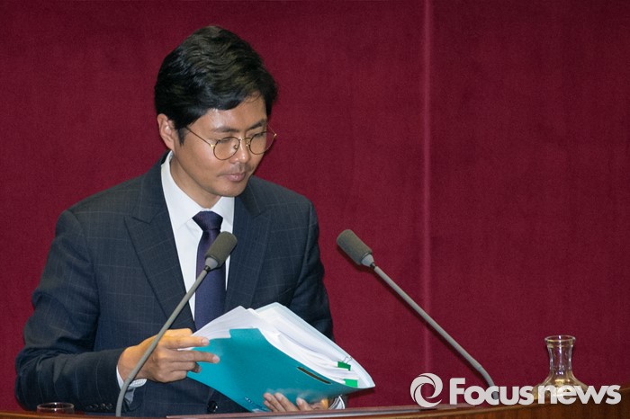 (서울=포커스뉴스) 김광진 더불어민주당 의원이 24일 오전 서울 여의도 국회 본회의에서 테러방지법과 관련해, 무제한 토론을 마치고 단상을 내려오고 있다.