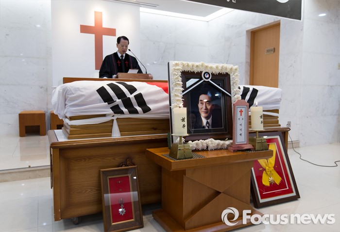 (서울=포커스뉴스) 24일 오전 서울 서초구 서울성모병원에서 故 이기택 전 민주당 총재의 발인 예배가 진행되고 있다.