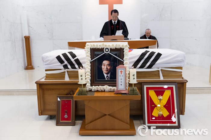 (서울=포커스뉴스) 24일 오전 서울 서초구 서울성모병원에서 故 이기택 전 민주당 총재의 발인 예배가 진행되고 있다.