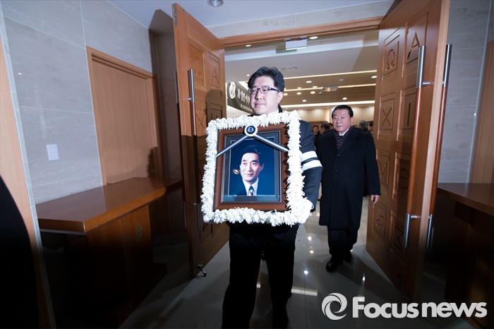 (서울=포커스뉴스) 24일 오전 서울 서초구 서울성모병원에서 故 이기택 전 민주당 총재의 발인식이 진행되고 있다.