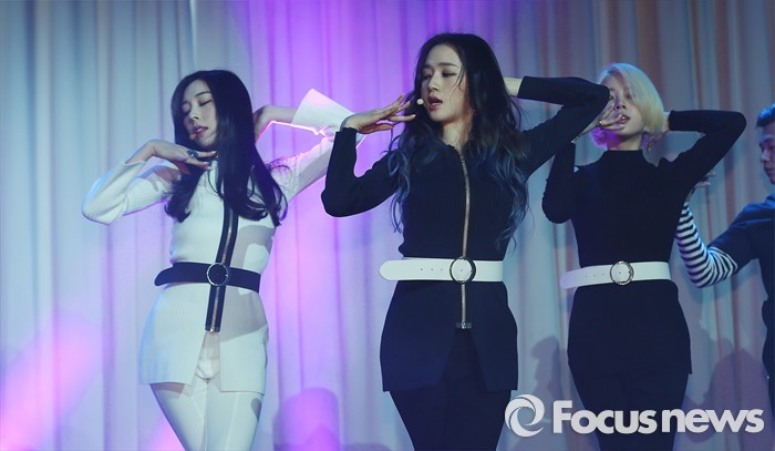 (서울=포커스뉴스) 24일 오전 서울 강남구 리버사이드 호텔에서 열린 걸그룹 레이디스 코드의 싱글앨범 '미스터리'(MYST3RY) 발표 쇼케이스에 참석한 멤버들이 신곡 '갤럭시'의 무대를 선보이고 있다.