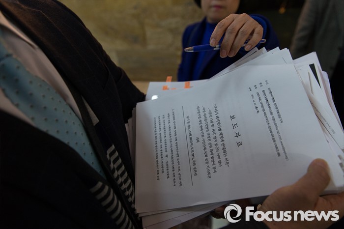 (서울=포커스뉴스) 24일 오전 서울 여의도 국회에서 테러방지법과 관련해 무제한 토론을 마친 은수미 더불어민주당 의원의 보좌관들이 원고를 들고 있다.