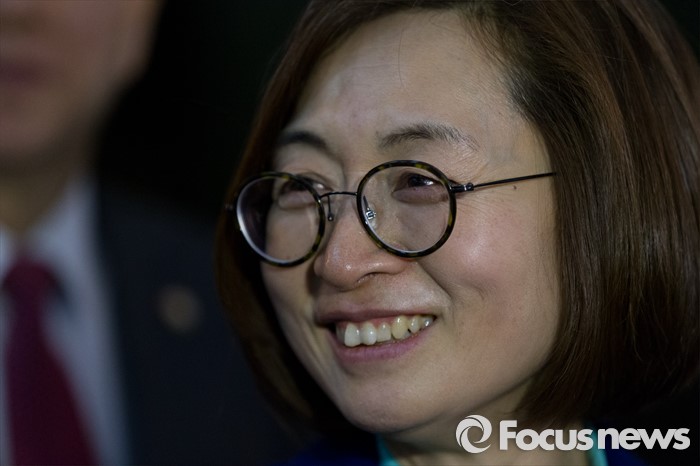 (서울=포커스뉴스) 24일 오후 서울 여의도 국회에서 테러방지법과 관련해 무제한 토론을 마친 은수미 더불어민주당 의원이 취재진과 인터뷰 중 환하게 웃고 있다.