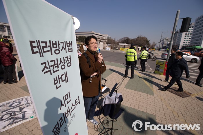 | △ 테러방지법 반대 연설하는 시민 |