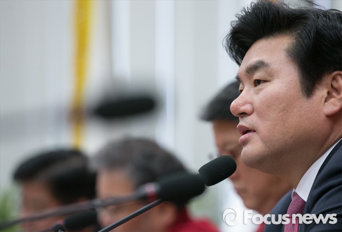 (서울=포커스뉴스) 테러방지법 직권상정에 반발해 야당의 무제한 토론(필리버스터)이 진행되고 있는 24일 오후 서울 여의도 국회에서 열린 새누리당 원내대표단-정보위원회 연석회의에 참석한 원유철 원내대표가 모두발언을 하고 있다.