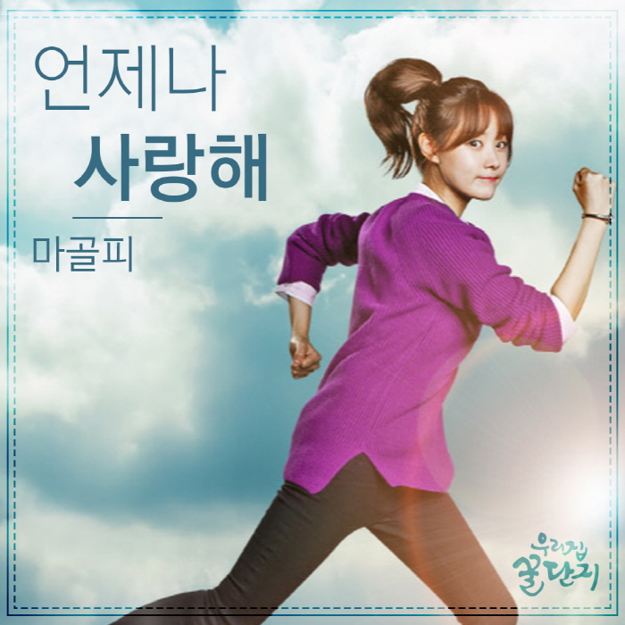 편곡은 작곡가 김경범(알고보니혼수상태)이 참여했다. 3년 연속 국내 드라마 최다 OST를 발표한 김경범은 폴포츠, 스틸하트, 알리, 이수영, 걸그룹 미스에이 수지, 김연지 등 실력파 가수들과 작업한 바 있다. OST제작사 더하기미디어 이성권 대표는 "마골피의 ‘언제나 사랑해’는 봄기운이 물씬한 느낌을 전한다. 시청자들에게 힐링 음악이 될 것이다"라고 소개했다.가수 마골피가 부른 KBS1TV 일일드라마 ‘우리집 꿀단지’ OST ‘언제나 사랑해’가 24일 정오 국내 음원사이트에서 공개됐다.사진은 앨범 재킷. <사진제공=더하기미디어>
