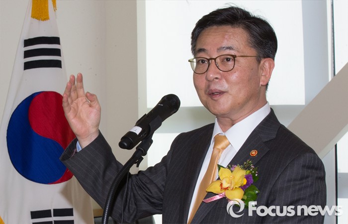 (안성=포커스뉴스) 24일 오후 경기 안성시 하나원에서 열린 하나원 농업·농촌 홍보관 개관식에서 홍용표 통일부 장관 축사를 하고 있다.