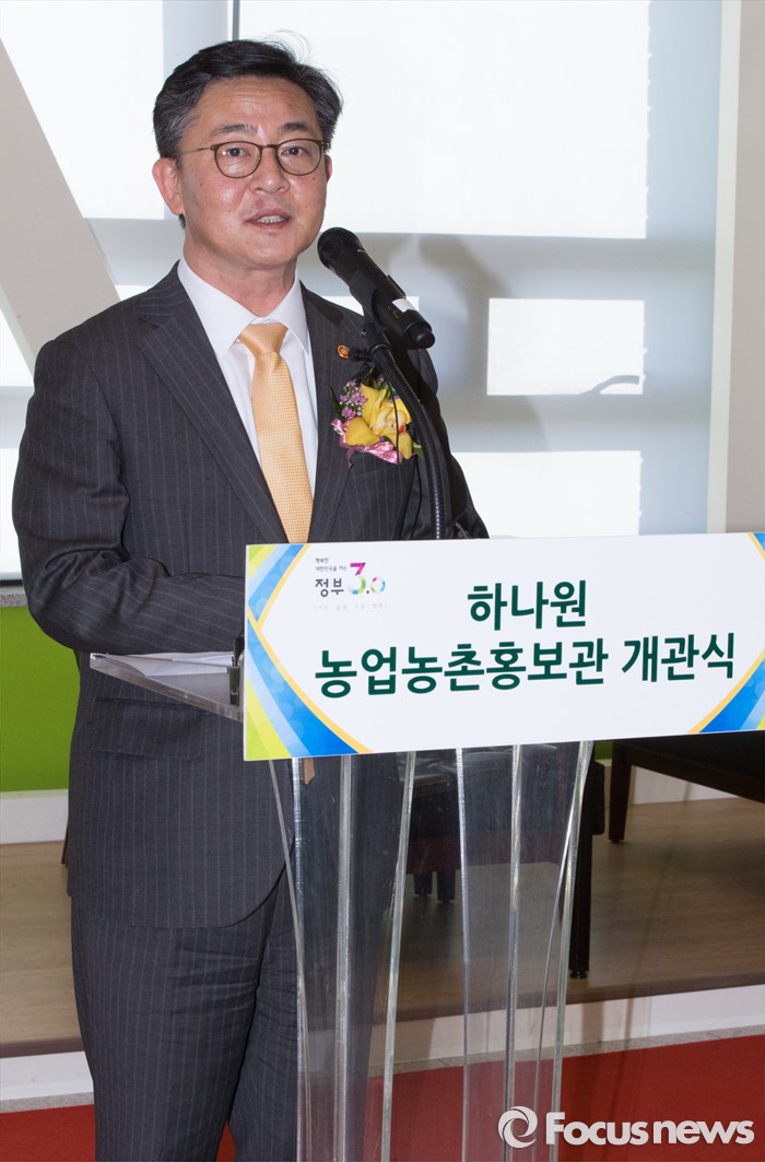 (안성=포커스뉴스) 24일 오후 경기 안성시 하나원에서 열린 하나원 농업·농촌 홍보관 개관식에서 홍용표 통일부 장관 축사를 하고 있다.