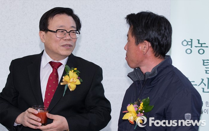 (안성=포커스뉴스) 24일 오후 경기 안성시 하나원에서 열린 하나원 농업·농촌 홍보관 개관식에서 이동필 농림축산식품부 장관과 농촌 정착 북한 이탈주민과 대화하고 있다.