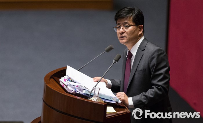 (서울=포커스뉴스) 박원석 정의당 의원이 24일 오후 서울 여의도 국회 본회의장에서 테러방지법의 본회의 의결을 막기 위한 필리버스터(무제한 토론을 통한 합법적 의사진행 방해)를 하고 있다.