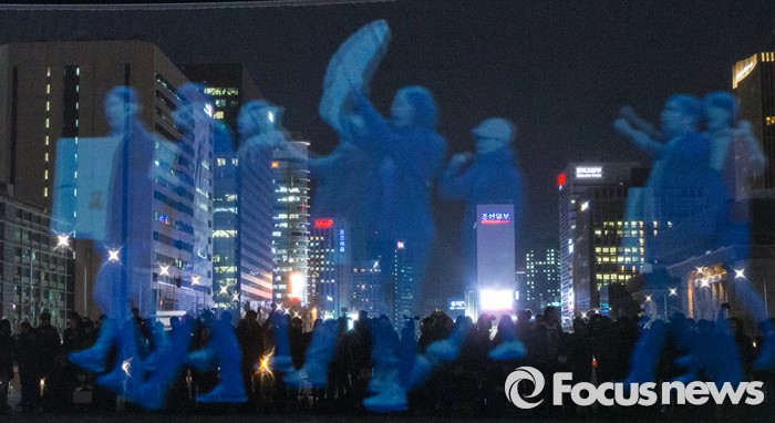 (서울=포커스뉴스) 24일 오후 8시 30분. 어둑한 서울 종로구 광화문광장에 파란 '유령'들이 나타났다.