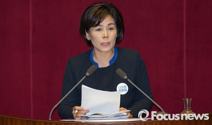 (서울=포커스뉴스) 테러방지법 직권상정에 반발해 야당의 무제한 토론(필리버스터)이 진행되고 있는 25일 새벽 서울 여의도 국회 본회의장에서 최민희 더불어민주당 의원이 발언을 하고 있다.