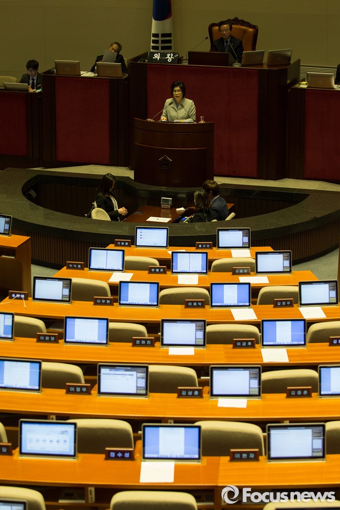 (서울=포커스뉴스) 테러방지법 직권상정에 반발해 야당의 무제한 토론(필리버스터)이 진행되고 있는 24일 오후 서울 여의도 국회 본회의장에서 유승희 더불어민주당 의원이 발언하고 있다.
