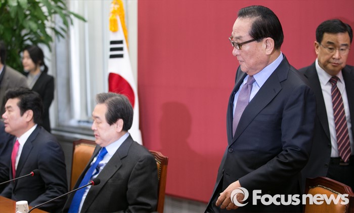 (서울=포커스뉴스) 서청원(오른쪽 두번째) 새누리당 최고위원이 25일 오전 서울 여의도 국회에서 열린 최고위원회의에 참석하고 있다.