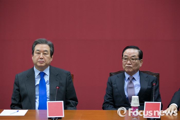 (서울=포커스뉴스) 김무성(왼쪽) 새누리당 대표와 서청원 최고위원이 25일 오전 서울 여의도 국회에서 열린 최고위원회의에 참석해 의원들의 발언을 듣고 있다.