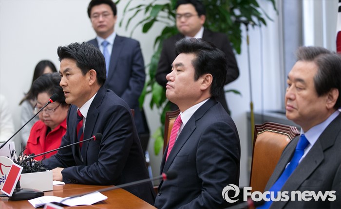 (서울=포커스뉴스) 김태호(왼쪽 두번째) 새누리당 최고위원이 25일 오전 서울 여의도 국회에서 열린 최고위원회의에 참석해 발언하고 있다.