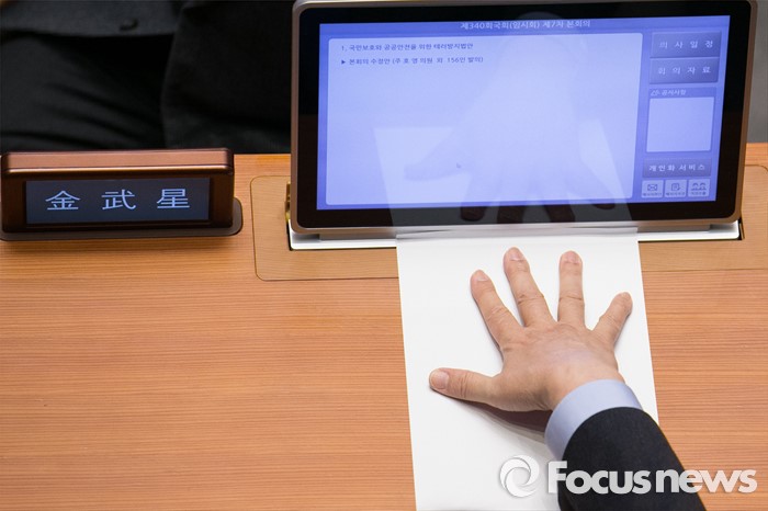 (서울=포커스뉴스) 김무성 새누리당 대표가 25일 오전 서울 여의도 국회 본회의장에서 야당의 필리버스터를 지켜보고 있다.