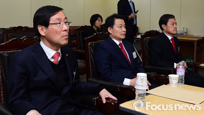 (서울=포커스뉴스) 25일 오전 서울 여의도 새누리당사에서 열린 20대 총선 공천 신청자 면접심사에 참석한 김장실(왼쪽부터), 김척수, 허남식 부산 사하갑 예비후보가 공관위원들의 질문에 답하고 있다.