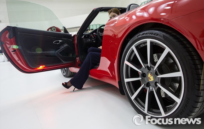 (서울=포커스뉴스) 25일 오전 서울 중구 동대문디지털플라자에서 모델들이 포르쉐 신형 911 카레라와 911 카레라S을 선보이고 있다.