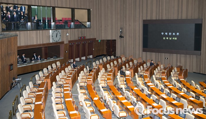 (서울=포커스뉴스) 테러방지법 직권상정에 반발해 야당의 무제한 토론(필리버스터)이 사흘째 진행되고 있는 25일 오후 서울 여의도 국회 본회의장에서 정의화 국회의장이 국회를 방문한 다비드 우수파쉬빌리(David USUPASHVILI) 조지아 국회의장에게 현 상황과 관련 설명하고 있다.