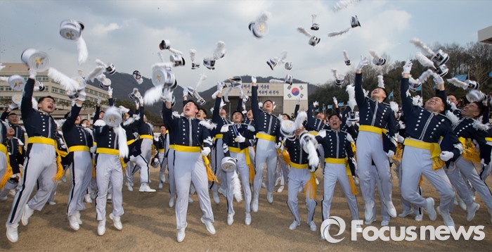 (청주=포커스뉴스) 25일 오후 충북 청주시 공군사관학교 연병장에서 열린 제64기 공군사관학교 졸업식에서 졸업생도들이 예모를 하늘 높이 던지고 있다.