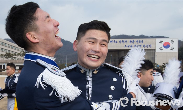 (청주=포커스뉴스) 25일 오후 충북 청주시 공군사관학교 연병장에서 열린 제64기 공군사관학교 졸업식에서 졸업생도들이 환호하고 있다.
