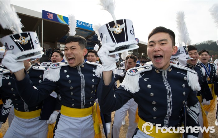 (청주=포커스뉴스) 25일 오후 충북 청주시 공군사관학교 연병장에서 열린 제64기 공군사관학교 졸업식에서 졸업생도들이 구호를 외치고 있다.