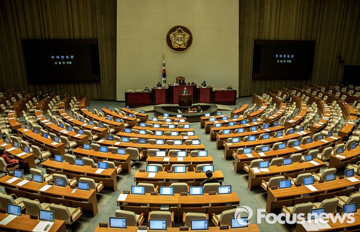 (서울=포커스뉴스) 테러방지법 직권상정에 반발해 야당의 무제한 토론(필리버스터)이 사흘째 진행되고 있는 25일 오후 서울 영등포구 국회 본회의장에서 신경민 더불어민주당 의원이 발언을 하고 있다.