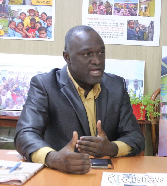 25일 서울 용산구 효창동 아프리카 아시아 난민교육후원회(ADRF) 사무실에서 만난 라이베리아의 학교 ‘뉴호프 아카데미’ 이사장 어거스틴 아코이(Augustne s.arkoi)씨는 에볼라 바이러스가 창궐했던 당시 상황을 기억하며 ‘교육’의 힘을 강조했다.