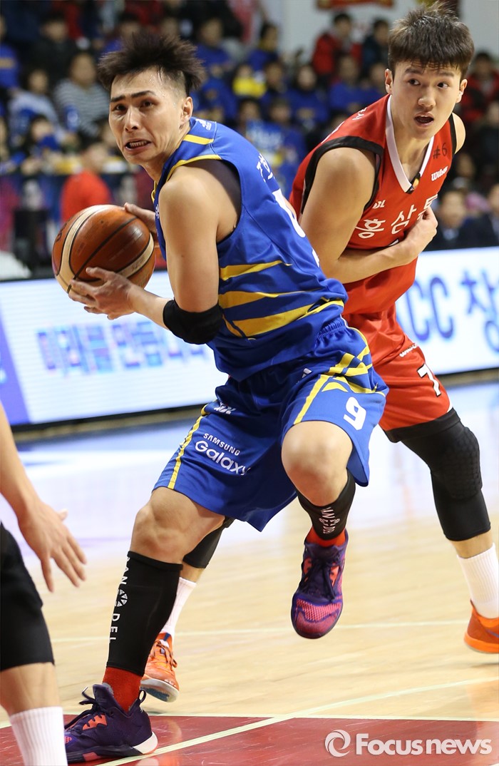 (안양=포커스뉴스) 25일 안양실내체육관에서 열린 2015-2016 프로농구 6강 플레이오프 KGC-삼성 1차전에서 삼성 주희정이 KGC 박찬희의 수비를 뚫고 골밑을 향해 대시하고 있다.