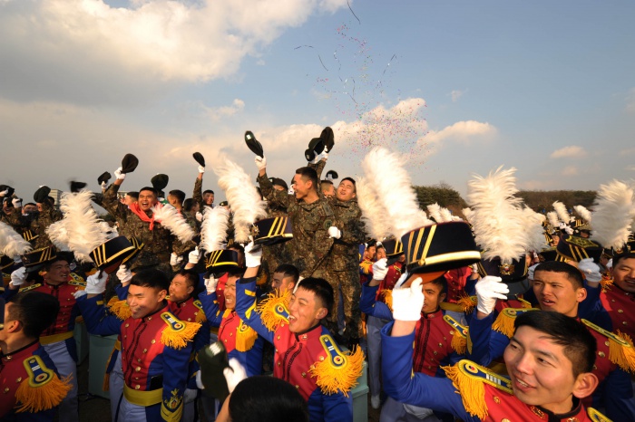 (서울=포커스뉴스) 25일 오후 서울 노원구 육군사관학교에서 열린 육사 72기 졸업식에서 졸업생도들과 재교생들이 화랑대의 별 행사를 마치고 환호하며 즐거워하고 있다. <사진제공=육군>