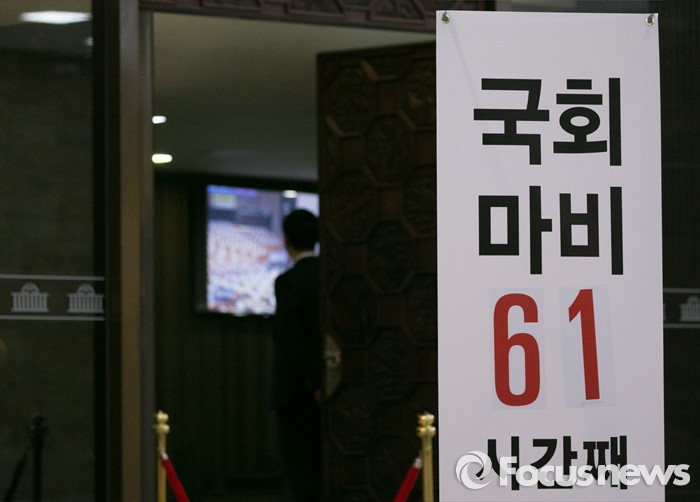| △ 본회의장 앞 여당의 배너 |
