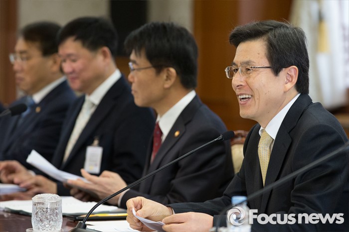 (서울=포커스뉴스) 황교안 국무총리가 26일 오전 서울 종로구 정부서울청사에서 열린 제8차 국민안전 민관합동회의에서 모두발언 전 관계부 장관들과 대화 나누며 웃고 있다.