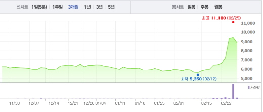 3차원(3D) 카메라 모듈업체인 나무가 또한 전일 대비 3500원(4.22%) 하락한 7만9400원에 거래되고 있다.큐에스아이 주가흐름<사진출처=네이버 캡쳐>