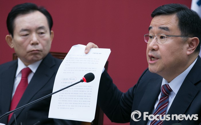 이에 대해 변협 관계자는 “해당 의견서를 25일 국회의장에게 전달한 것이지 특정 정당에 보낸 것이 아니다”라면서 “대한변협은 줄곧 법률안에 대한 의견을 내왔었고 이번 법률안이 정치적으로 쟁점이 되고 있다고 해서 변협이 정치적으로 편향됐다고 평가할 수는 없을 것”이라고 말했다.김정훈(오른쪽) 새누리당 정책위의장이 25일 오전 서울 여의도 국회에서 열린 최고위원회의에 참석해 대한변호사협회의 테러방지법 관련 의견서를 들고 발언하고 있다. 2016.02.25 박동욱 기자