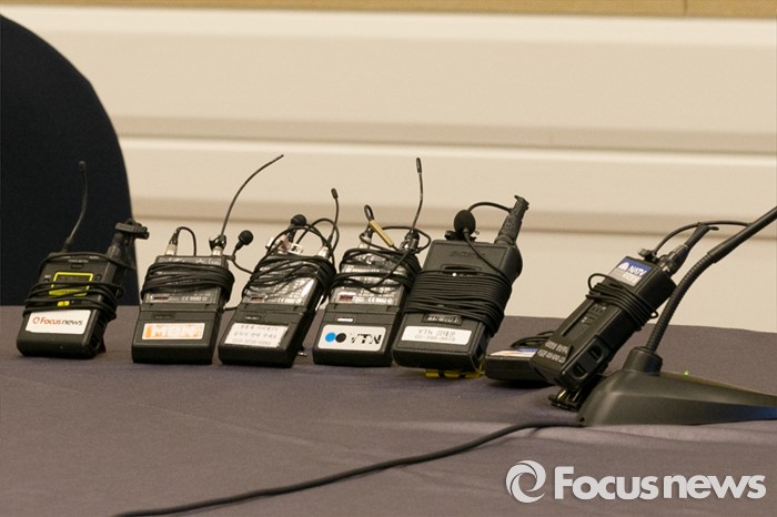 (서울=포커스뉴스) 선거구획정과 쟁점법안 논의를 위한 여·야 대표, 원내대표 2+2 회동이 무산된 26일 오전 서울 여의도 국회 귀빈식당에 취재를 위한 마이크만 놓여 있다.