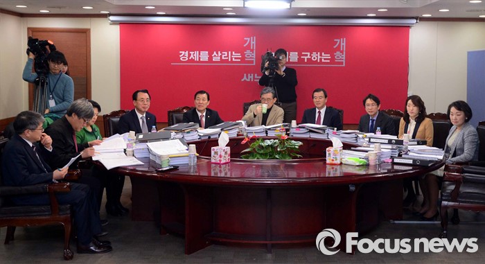 (서울=포커스뉴스) 26일 오전 서울 여의도 새누리당사에서 열린 20대 총선 공천 신청자 면접심사에 참석한 이한구 공천관리위원장 등 위원들이 대구 중구남구 예비후보들에게 질문하고 있다.