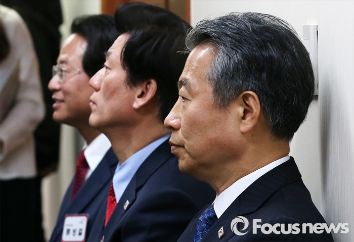 (서울=포커스뉴스) 26일 오전 서울 여의도 새누리당사에서 열린 20대 총선 공천 신청자 면접심사에 참석한 정종섭(오른쪽부터), 손종익 대구 동구갑 예비후보, 류성걸 의원이 대기하고 있다.