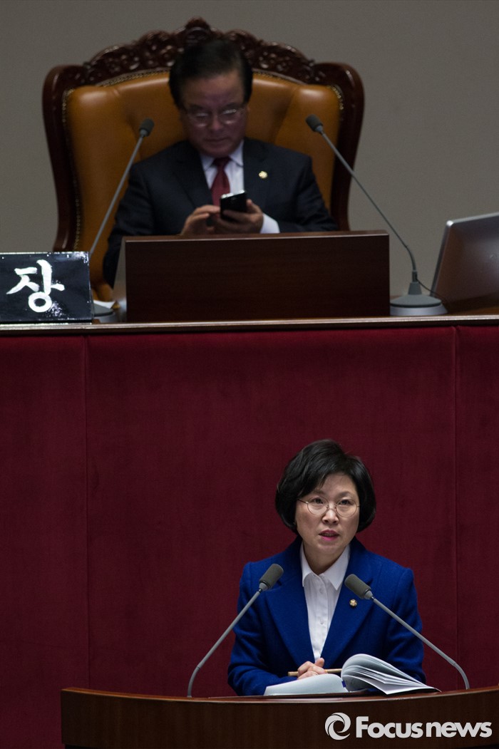 (서울=포커스뉴스) 테러방지법 직권상정에 반발해 야당의 무제한 토론(필리버스터)이 나흘째 진행되고 있는 26일 오후 서울 여의도 국회 본회의장에서 김현 더불어민주당 의원이 발언하고 있다.